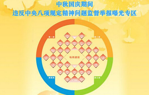 中秋国庆临近,为紧盯重要时间节点,驰而不息纠正“四风”,严防反弹回潮,中央纪委监察部网站今日推出《中秋国庆期间违反中央八项规定精神问题监督举报曝光专区》。