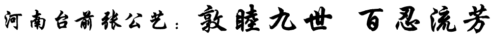 张公艺自幼聪慧,博通经史,以忍修身,礼让齐家。在他的主持下,河南台前县桥北张村张氏家族出现了“九世聚族同居,眷属九百口,住房四百区,依然合产共爨……内外礼让,上下仁和”的罕见局面,传为美谈。“父子不忍失慈孝,兄弟不忍失爱敬……”千百年来,张公艺的“百忍”思想,史书昭彰,为世人所推崇,历代传颂。 详细