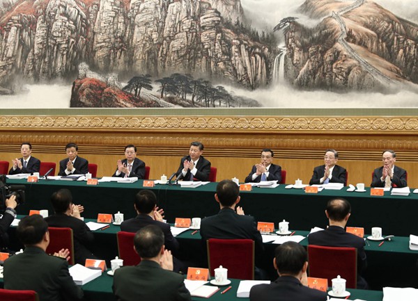 10月20日,中国共产党第十九次全国代表大会主席团在北京人民大会堂举行第二次会议。习近平、李克强、张德江、俞正声、刘云山、王岐山、张高丽等出席会议。