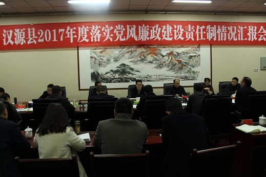 检查组通过听取汇报、查阅档案和延伸检查等方式,对汉源县2017年度落实党风廉政建设责任制情况进行了检查。市人大常委会副主任、县委书记杨兴品向检查组汇报了我县落实党风廉政建设责任制工作开展情况,并作了表态性发言。全胜部长就此次检查工作进行了安排,指出了当前从严治党方面存在的问题,要求党委切实担负起全面从严治党的政治责任,扎实抓好党的十九大精神学习贯彻,党员领导干部要以上率下,做到忠诚干净担当。